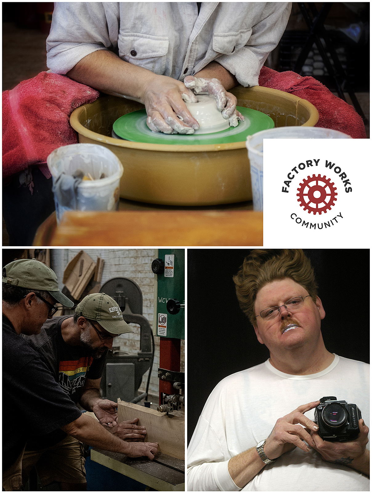 At Factory Works, we believe in the power of creativity to bring people together, inspire expression, and strengthen our community. Through our hands-on programs—the Factory Works Woodshop, Photo Lab, and Clay Studio—we provide the tools, space, and support that makers, artists, and doers need to create, learn, and grow.