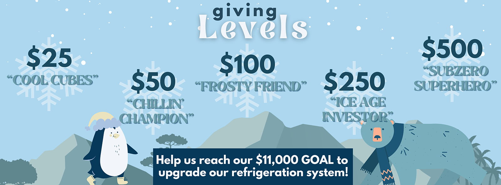 We need YOUR help to bring in two brand-new, hardworking refrigerators that won’t give up on us in the middle of summer. Every dollar donated during our fundraiser gets us closer to fresh food, cold drinks, and not having to play “Is this milk safe?” ever again.