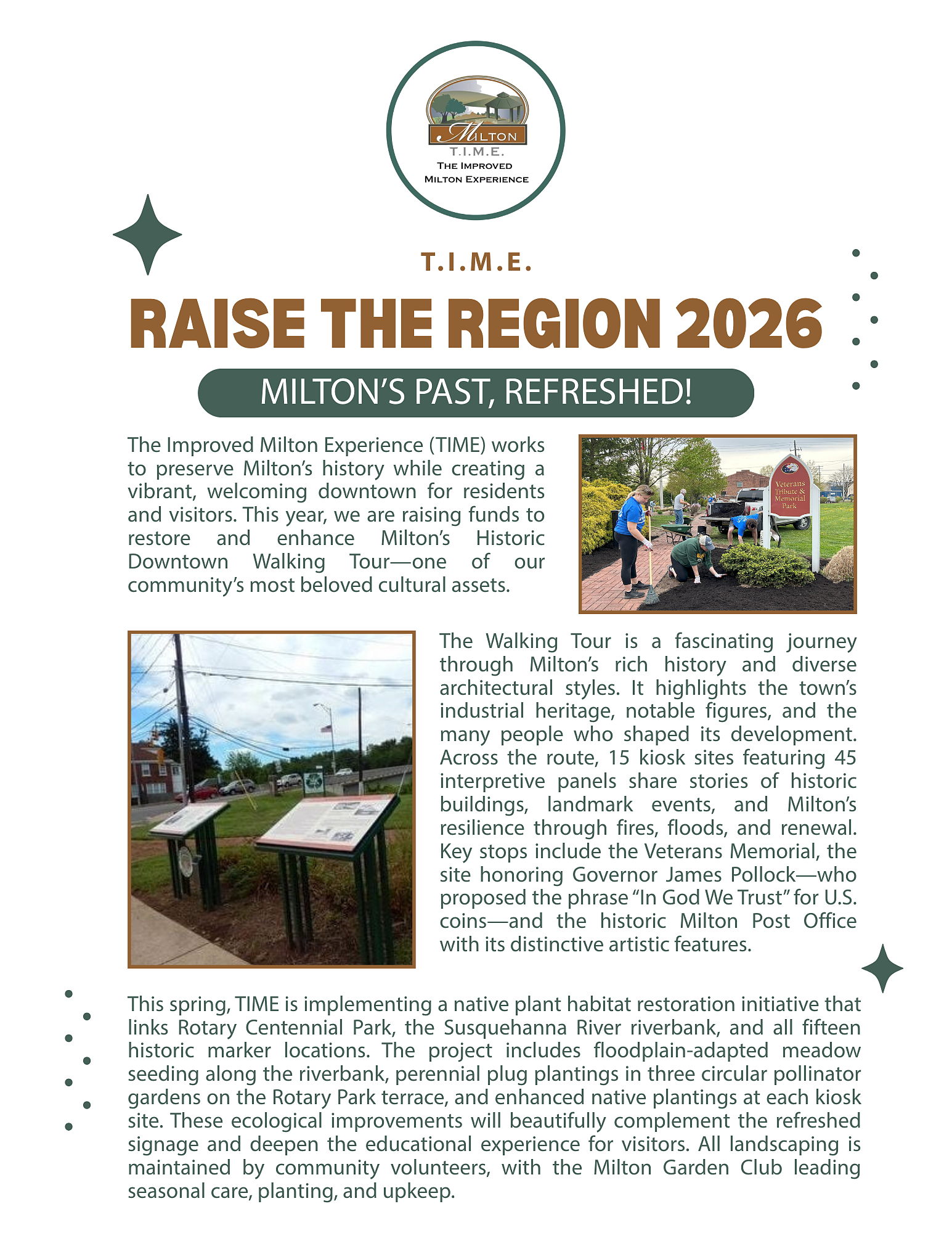 To learn more about The Improved Milton Experience (T.I.M.E.) visit www.visitmiltonpa.org or check us out on Facebook!
