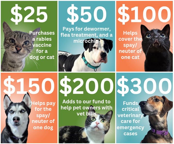 • An ever-evolving community resource assisting pet owners with veterinary expenses, pet food, care for outdoor cat colonies, humane education and more.