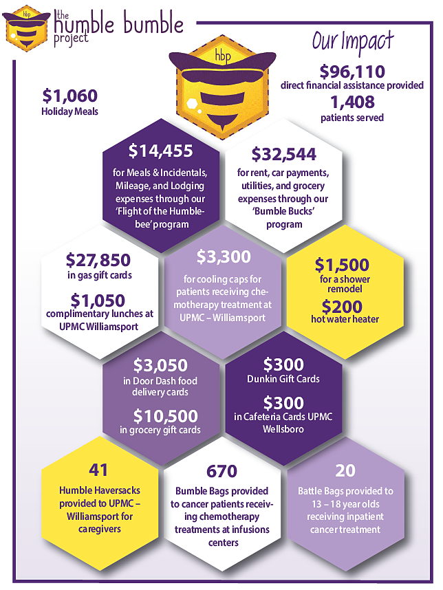 The mission of the Humble Bumble Project is to alleviate even the slightest amount of financial burden faced by pediatric, adolescent, and adulthood cancer patients so patients and caregivers can focus on family rather than finance.
