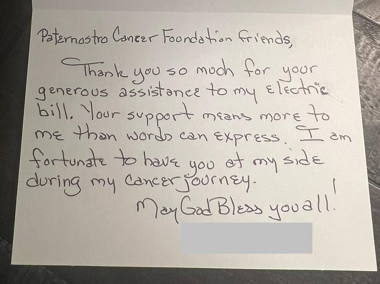 The Paternostro Cancer Foundation provides much-needed support, including financial, to families facing a cancer diagnosis in Lycoming County and surrounding communities.